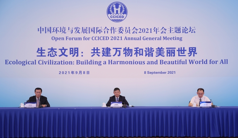 9月8日,中國(guó)環(huán)境與發(fā)展國(guó)際合作委員會(huì)(以下簡(jiǎn)稱國(guó)合會(huì))2021年年會(huì)“生態(tài)文明:共建萬(wàn)物和諧美麗世界”主題論壇在京舉行。生態(tài)環(huán)境部部長(zhǎng)、國(guó)合會(huì)中方執(zhí)行副主席黃潤(rùn)秋出席并致辭。